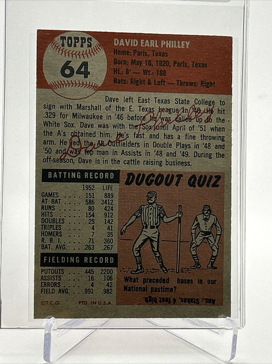 1953 Topps Dave Philley Baseball Card #64 EX Quality FREE SHIPPING