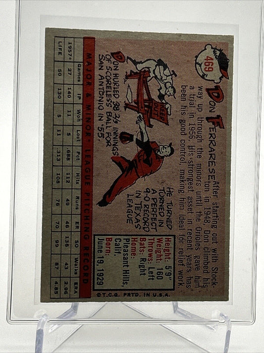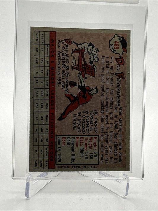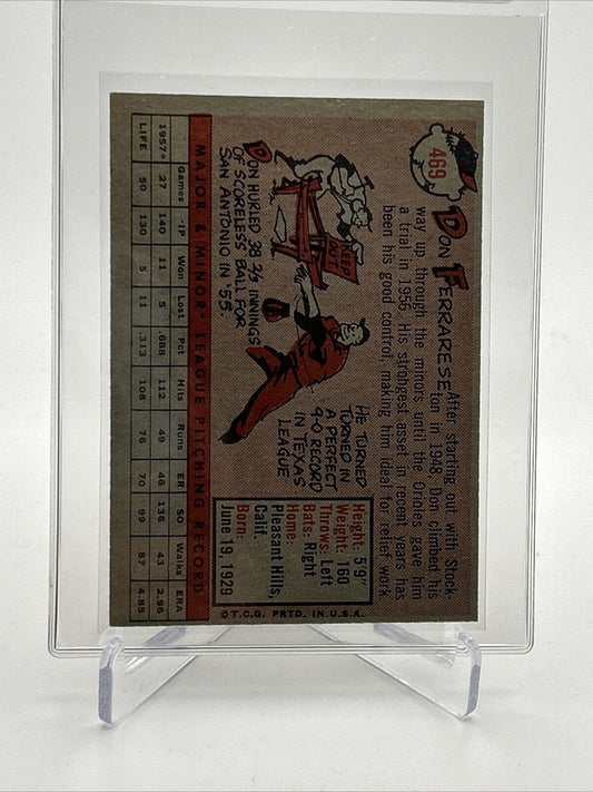 1958 Topps Don Ferrarese Baseball Card #469 EX Quality FREE SHIPPING
