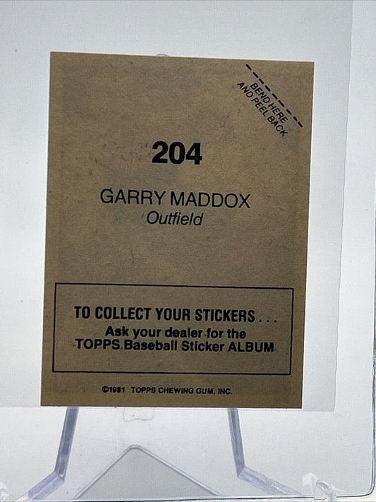 1981 Topps Stickers Garry Maddox Baseball Card #204 NM-Mint FREE SHIPPING