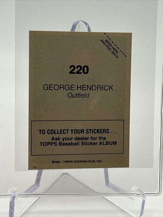 1981 Topps Stickers George Hendrick Baseball Card #220 NM-Mint FREE SHIPPING