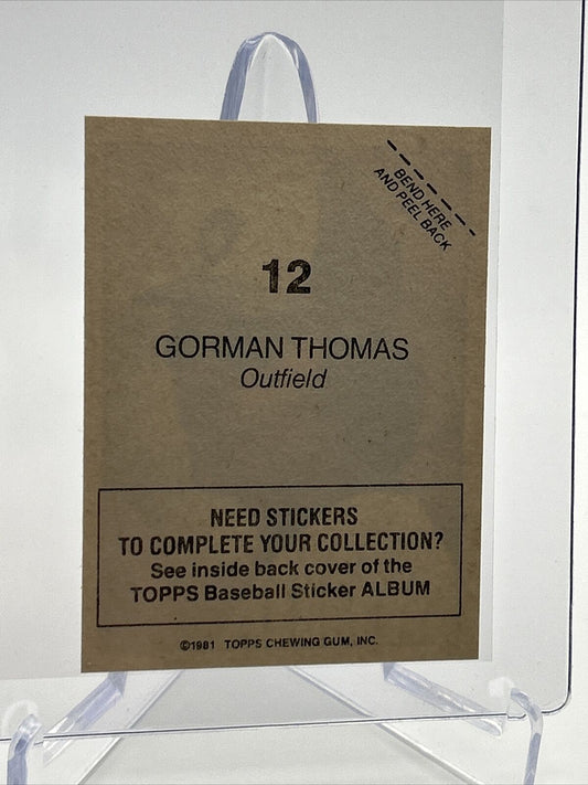1981 Topps Stickers Gorman Thomas Baseball Card #12 NM-Mint FREE SHIPPING