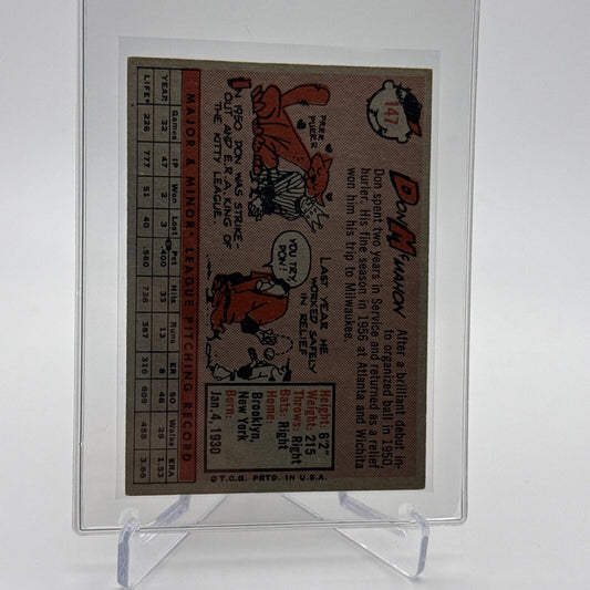 1958 Topps Don McMahon Rookie Baseball Card #147 EX Quality FREE SHIPPING