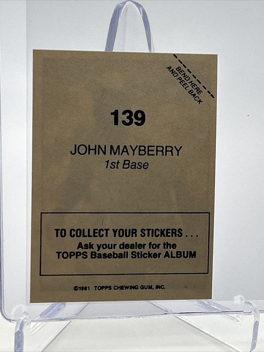 1981 Topps Stickers John Mayberry Baseball Card #139 NM-Mint FREE SHIPPING