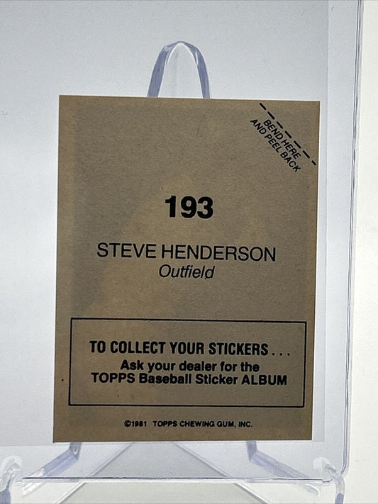 1981 Topps Stickers Steve Henderson Baseball Card #193 NM-Mint FREE SHIPPING