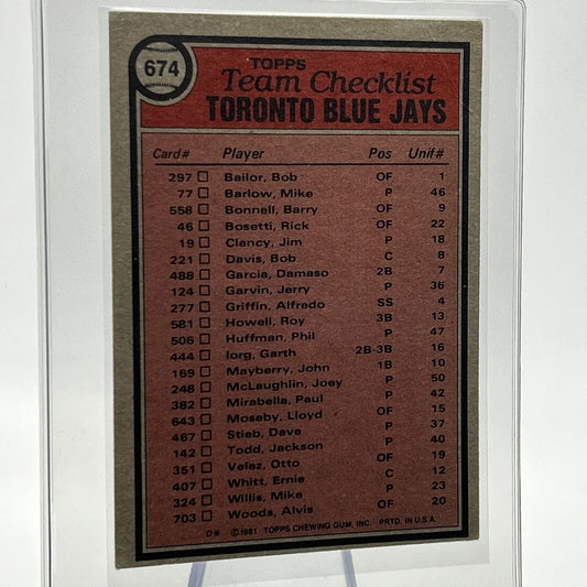 1981 Topps Toronto Blue Jays Checklist Baseball Card #674 NM-Mint FREE SHIPPING