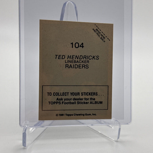 1981 Topps Ted Hendricks Football Sticker Card #104 NM-MT FREE SHIPPING
