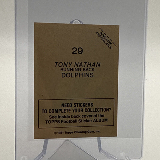 1981 Topps Tony Nathan Football Sticker Card #29 NM-MT FREE SHIPPING