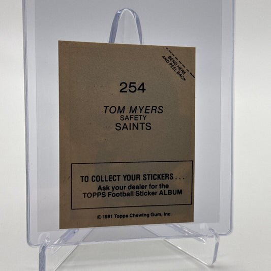 1981 Topps Tom Myers Football Sticker Card #254 NM-MT FREE SHIPPING
