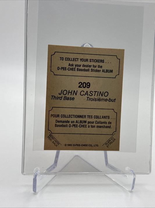 1982 O-Pee-Chee Stickers John Castino Baseball Card #209 NM-MT FREE SHIPPING