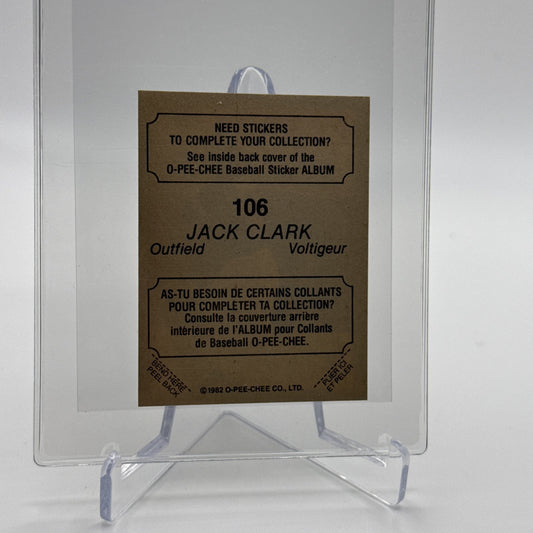 1982 O-Pee-Chee Stickers Jack Clark Baseball Card #106 NM-MT FREE SHIPPING