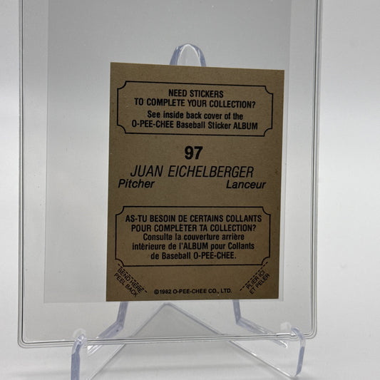 1982 O-Pee-Chee Stickers Juan Eichelberger Baseball Card #97 NM-MT FREE SHIPPING