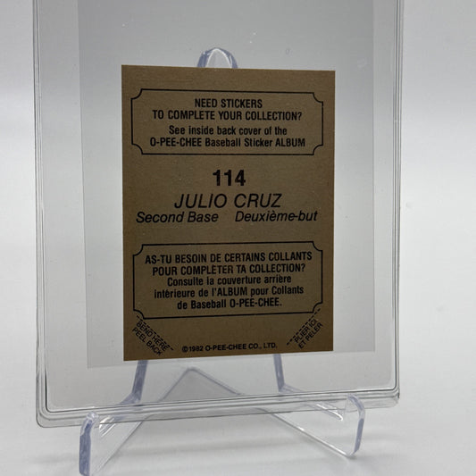 1982 O-Pee-Chee Stickers Julio Cruz Baseball Card #114 NM-MT FREE SHIPPING