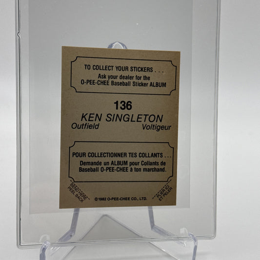 1982 O-Pee-Chee Stickers Ken Singleton FOIL Card #136 NM-MT FREE SHIPPING
