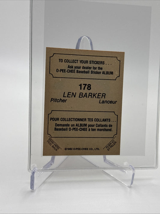 1982 O-Pee-Chee Stickers Len Barker Baseball Card #178 NM-MT FREE SHIPPING