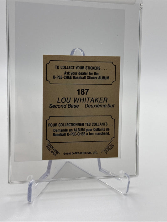 1982 O-Pee-Chee Stickers Lou Whitaker Baseball Card #187 NM-MT FREE SHIPPING