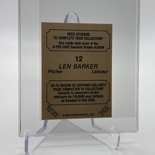 1982 O-Pee-Chee Stickers Len Barker Card #12 NM-MT FREE SHIPPING