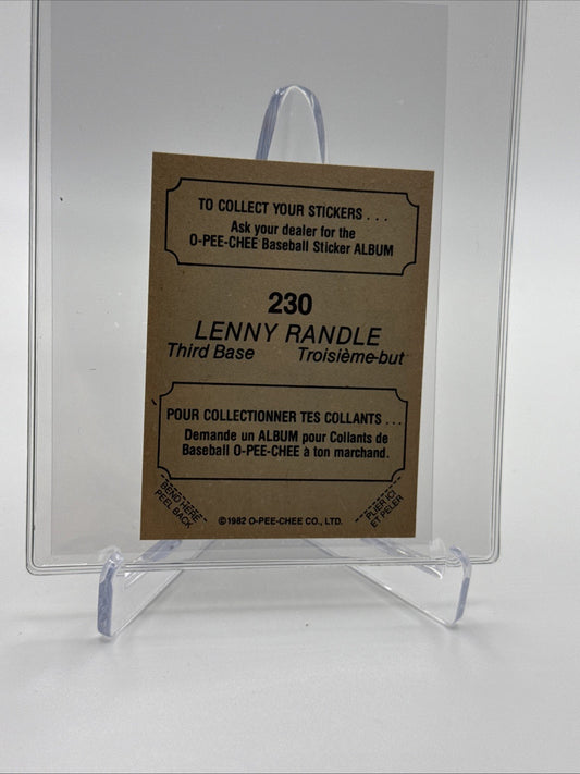 1982 O-Pee-Chee Stickers Len Randle Baseball Card #230 NM-MT FREE SHIPPING