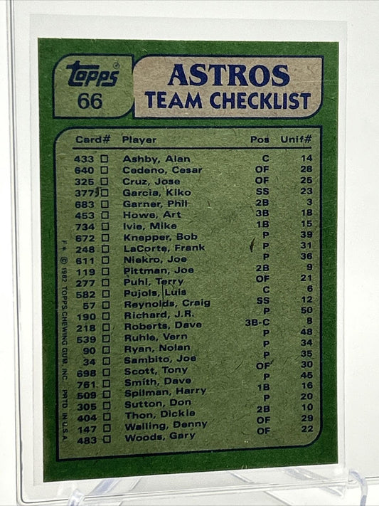 1982 Topps Astros Leaders/Checklist Baseball Card #66 NM-Mint FREE SHIPPING