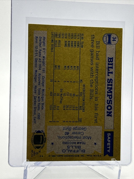 1982 Topps Bill Simpson Football Card #34 NM-MT FREE SHIPPING