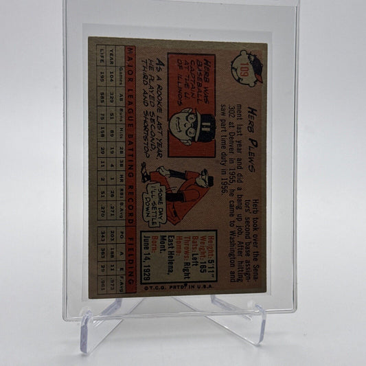 1958 Topps Herb Plews Baseball Card #109 EX Quality FREE SHIPPING