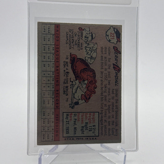 1958 Topps Jerry Kindall Rookie Baseball Card #221 EX Quality FREE SHIPPING