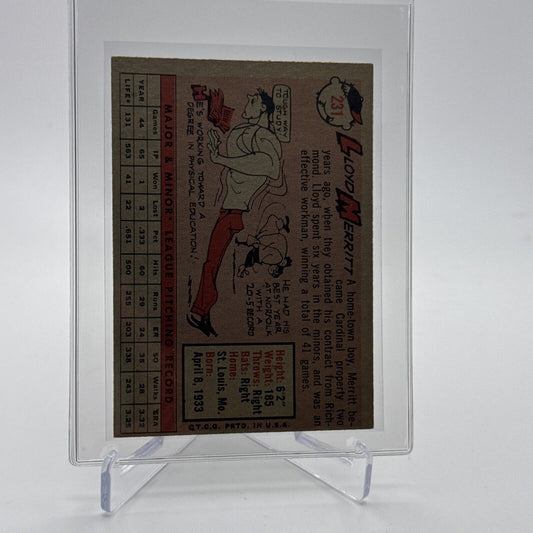 1958 Topps Lloyd Merritt Rookie Baseball Card #231 EX Quality FREE SHIPPING