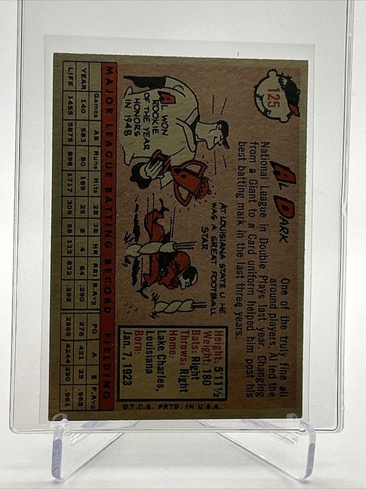 1958 Topps Al Dark Baseball Card #125 EX Quality FREE SHIPPING
