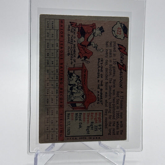 1958 Topps Norm Zauchin Baseball Card #422 EX Quality FREE SHIPPING
