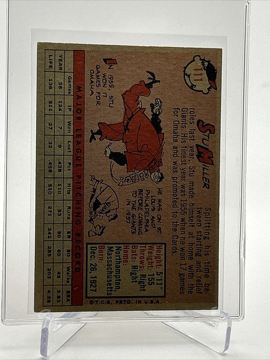 1958 Topps Stu Miller Baseball Card #111 EX Quality FREE SHIPPING