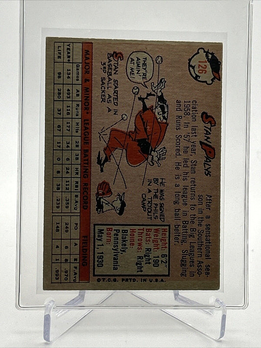 1958 Topps Stan Palys Rookie Baseball Card #126 EX-MT Quality FREE SHIPPING