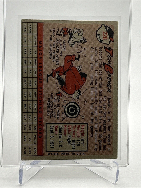 1958 Topps Tom Brewer Baseball Card #220 EX-MT Quality #2 FREE SHIPPING