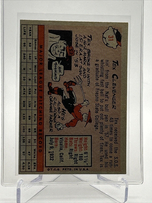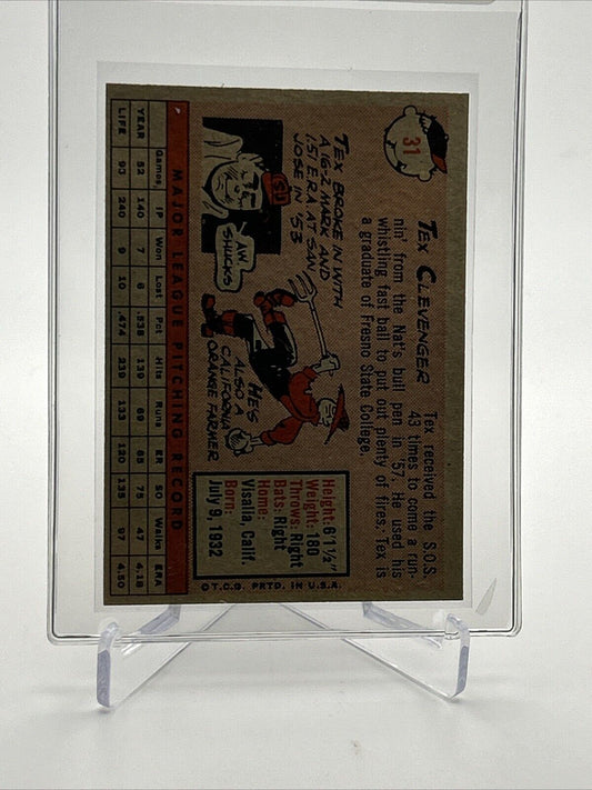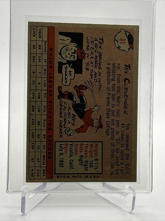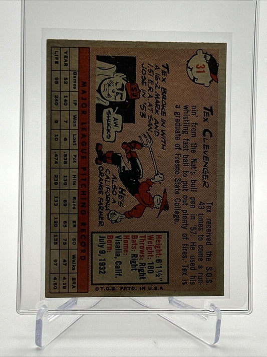 1958 Topps Tex Clevenger Rookie Baseball Card #31 VG-EX Quality FREE SHIPPING