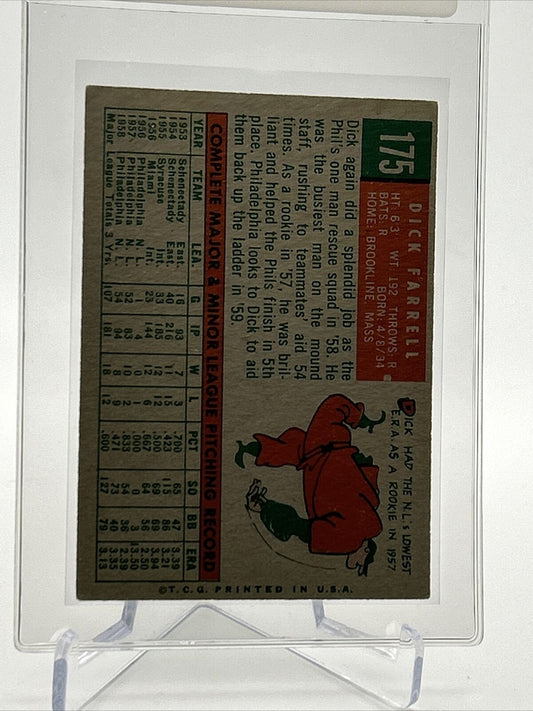 1959 Topps Dick Farrell Baseball Card #175 EX Quality FREE SHIPPING
