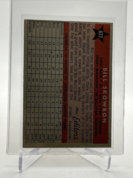 1958 Topps Bill Skowron Baseball Card #477 EX-MT Quality #2 FREE SHIPPING