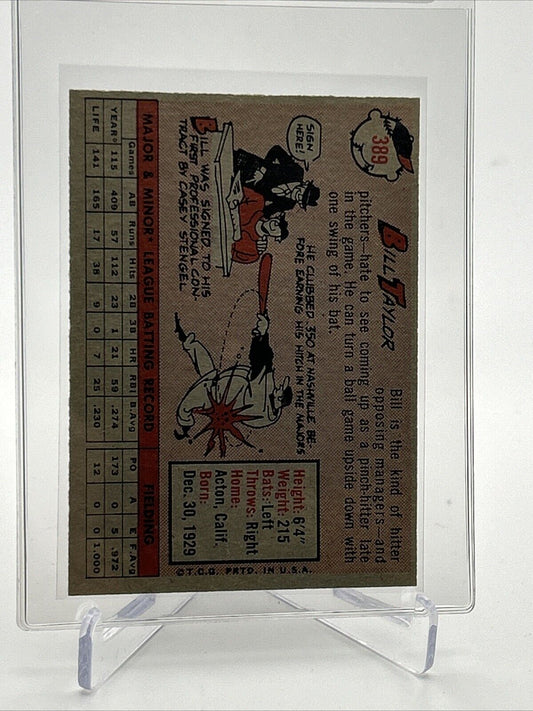 1958 Topps Bill Taylor Baseball Card #389 EX-MT Quality FREE SHIPPING