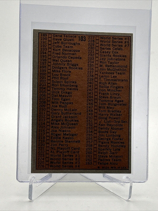 1972 Topps 2nd Series Checklist: 133-263 Card #103 VG Quality FREE SHIPPING