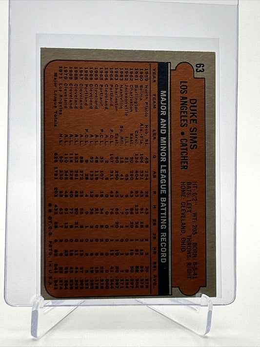 1972 Topps Duke Sims Baseball Card #63 VG-EX Quality FREE SHIPPING