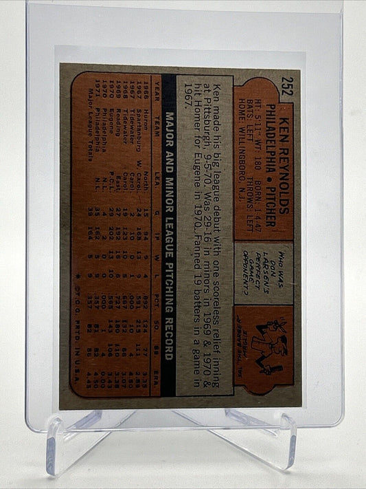 1972 Topps Ken Reynolds Baseball Card #252 EX Quality #2 FREE SHIPPING