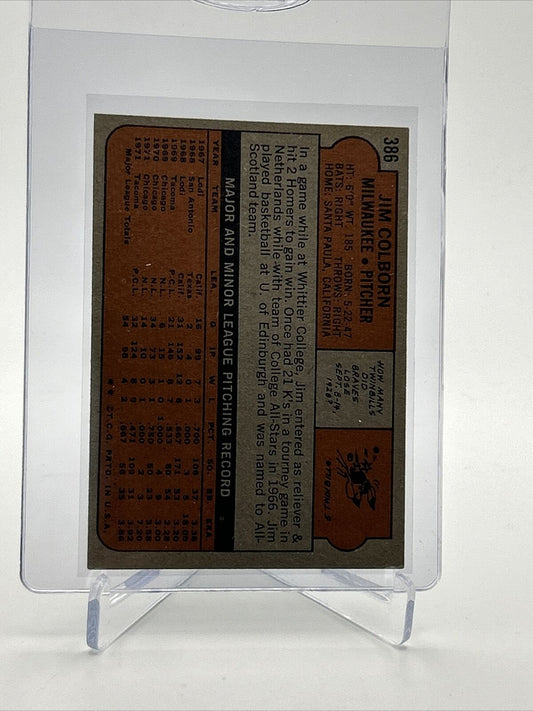 1972 Topps Jim Colborn Baseball Card #386 EX-MT Quality FREE SHIPPING