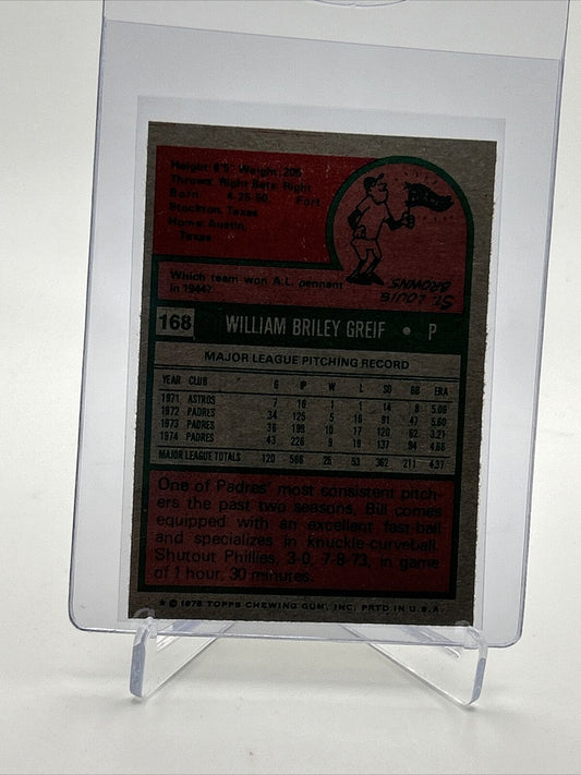 1975 Topps Bill Greif Baseball Card #168 NM Quality FREE SHIPPING