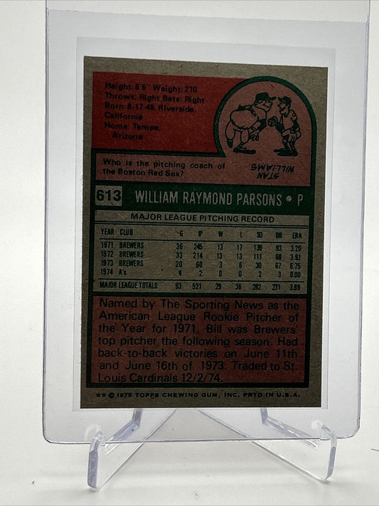 1975 Topps Bill Parsons Baseball Card #613 NM Quality FREE SHIPPING
