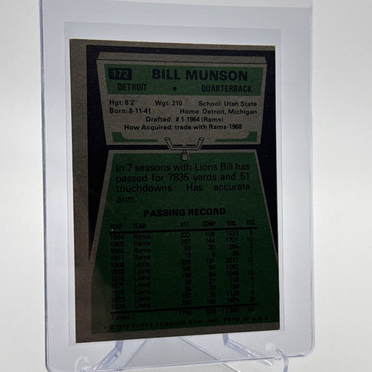 1975 Topps Bill Munson Football Card #172 NM Quality FREE SHIPPING
