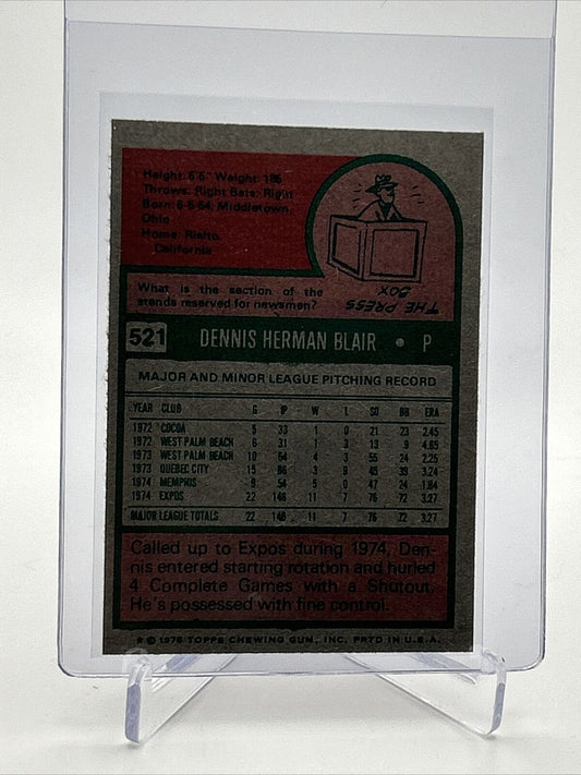 1975 Topps Dennis Blair Rookie Baseball Card #521 NM Quality FREE SHIPPING