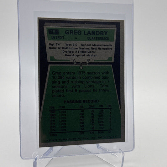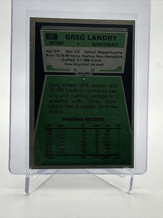 1975 Topps Greg Landry Football Card #15 NM Quality #5 FREE SHIPPING