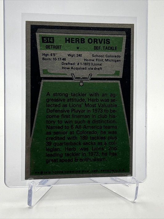 1975 Topps Herb Orvis Rookie Football Card #514 EX-MT Quality FREE SHIPPING
