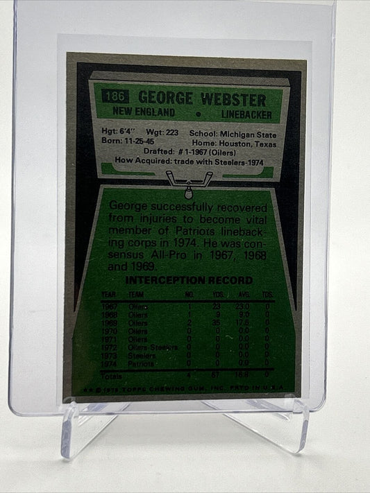 1975 Topps George Webster Football Card #186 NM Quality FREE SHIPPING
