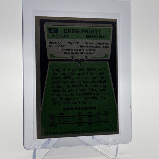 1975 Topps Greg Pruitt Football Card #49 NM Quality #3 FREE SHIPPING