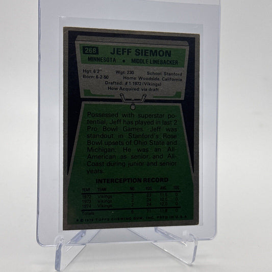 1975 Topps Jeff Siemon Football Card #268 NM Quality #2 FREE SHIPPING