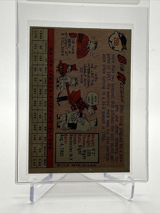 1958 Topps Bob Keegan Baseball Card #200 EX-MT Quality FREE SHIPPING