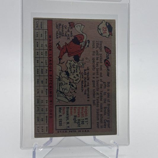 1958 Topps Bob Grim Baseball Card #224 EX-MT Quality FREE SHIPPING